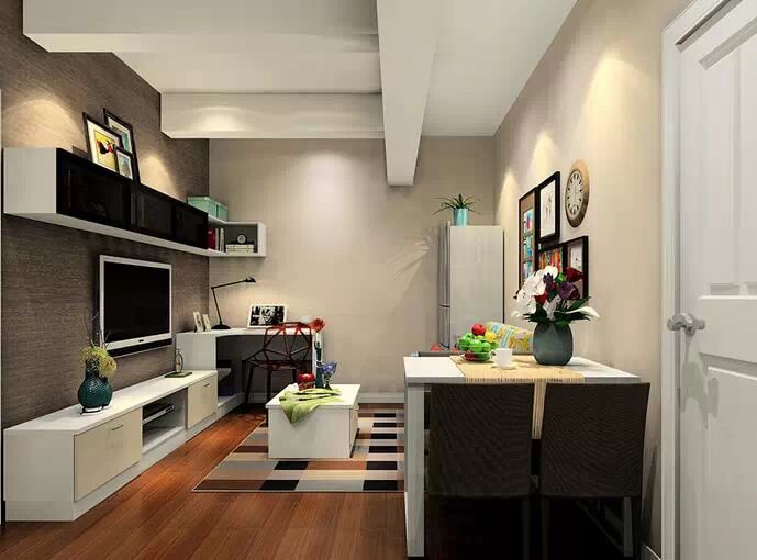 ↘小户型客厅用转角书桌来打造家庭办公区。
